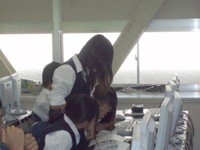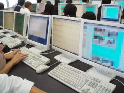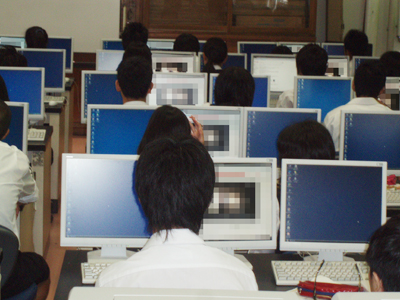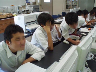 写真4は代表者の発表の様子です。コンピュータ室は広く,またコンピュータのファンの音などにより声が伝わりにくいということもあり,生徒の発表はワイヤレスマイクを使用して行いました。マイクの感度を上げておいたので,小さな声の生徒でも全員に聞こえました。しかし,下を向いてしまったり,聞いている生徒の方を向かないで発表したりという発表者もいたため,発表の仕方についての指導を改めて行う必要があると感じました。 (4)評価について 本授業においては,Webページからコンセプトを考え言語化できたかどうか,コンセプトを反映させる方法を言語化できたかどうかを,生徒個人に評価をさせました。評定を付ける際には反映させていません。 (5)一昨年・昨年の作品との比較 一昨年はコンセプトについてCMを通して説明しただけでした。昨年度はCMを見せ,いくつかのWebページのコンセプトをアンケートシステムに入力させ,その結果を中間モニターに表示して目立った回答に対して私がコメントをするといった形での指導でした。これらの2年間との比較をすることで,今回の授業の効果を考えてみたいと思います。その方法として,生徒が制作した作品のコンセプトを読み比べ比較をしたいと思います。 |