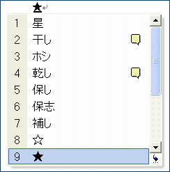 2.「星」に変換される。もう一度,[スペース]キーを押して変換候補を表示する。