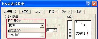 | [セルの書式設定]ダイアログボックスの[配置]タブでは,セル内での文字の横位置や縦位置をさまざまに指定することができます。 |