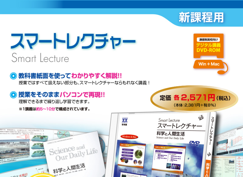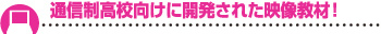 通信制高校向けに開発されたビデオですが、授業を欠席したときの補習や、もう一度教科書内容を復習するのにもぴったりです。 |