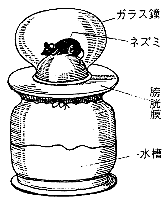 | ところで,ラボアジェの研究で大切なことは上記の論文中で明らかにしていることであるが,動物の呼吸に際して二酸化炭素が排出されることを実験的に示していることである。 彼はフランス・スズメをガラス鐘内に閉じ込め,約1時間,スズメの呼吸の様子を観察している。スズメは55分で死亡し,ガラス鐘内の空気ははじめの約60分の1減少していた。これは水銀をフラスコ内で燃焼させたときの5分の1の減少に比べるとはなはだ少ない数値である。あとに残った空気の中ではローソクは燃えないし,新たに動物を入れてもすぐに死ぬ点では,水銀の実験の場合と同じである。ただ,石灰水を白濁させる点では,水銀の場合とは異なっていた。 ラボアジェはこのあとに残った空気を苛性アルカリと反応させてみた。すると体積が6分の1近く減少し,さらにアルカリがその腐食性を失い,酸で発泡するという性質に変化した。これは1761年にブラック(Black, Joseph, 1728-1799)が発見した固定空気(fixed air)の持つ性質と同じものであった。ラボアジェは固定空気という言葉の代わりに,“白亜から得られる酸”という意味から「白亜酸」という名を与えた。今日の二酸化炭素(炭酸ガス)も時代により,人によりさまざまに呼ばれてきたのである。 その後,1780年にラボアジェはラプラス(Laplace, Pierre-Simon, Marquis de, 1749-1827)と共同でより精密に呼吸に際しての酸素の取り込み,水及び二酸化炭素の生成を定量的に測り,また熱の発生量も測定し,動物の熱は体内の養分が燃焼するときの化学反応熱に由来するものであり,呼吸と燃焼は本質的には同じ現象であると考え,“呼吸とは体内における緩やかな燃焼である”と論じた。もちろん,これは現在からみれば,あまりにも短絡的な類比であるが,呼吸現象の解明を一歩前進させた彼の功績は大きなものであった。 |
