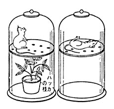| 次に炭酸同化作用と光のかかわりは、どのようにして明らかにされたのであろうか。ここで、先に登場したインヘンフースが再登場することになる。 1779年に彼は『植物に関する実験、日光の下で普通空気を浄化し、暗所や夜間では毒する植物の偉大な力の発見』という論文を公にしている。この表題にある普通空気(Common Air)という言葉は、いわゆる空気を指しており、当時、わざわざこうした断りがなされたのは、いろいろな新しい気体が発見され始めており、これらにもAir という言葉がつけられていたためである。