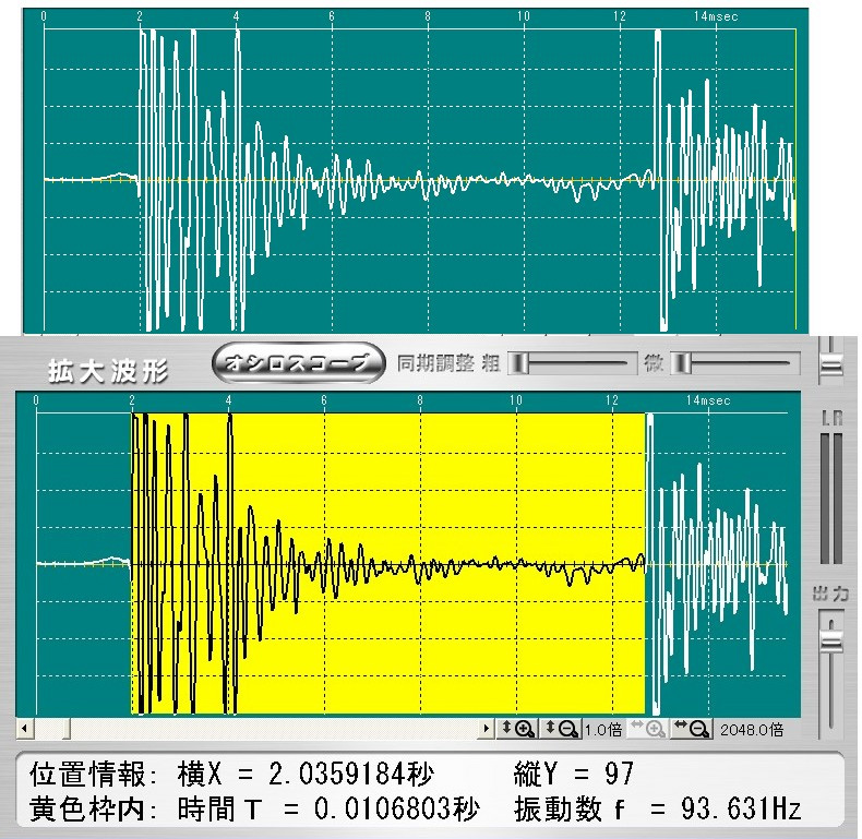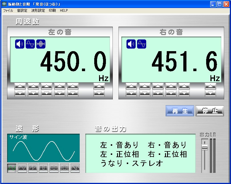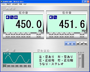 (2) うなりの学習と公式の検証 [1] 導入用:差が0.8〔Hz〕の二つの音を出し、ストップウォッチで20回「うなる」時間Δt を測定させ、このうなりの振動数の測定値