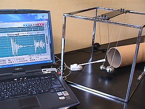 | ここでは3種類の利用例だけを紹介します。アイデアしだいでいくらでも広がっていきそうです。 (1) 音速の測定 教科書の「音速はυ=331.5+0.6t」を学習する際の導入として行います。紙管(長さ