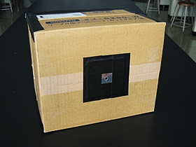 明かりを消した瞬間、像が浮かび上がる様子は何度見ても感動的。箱の前を人が通り過ぎると、像の方でも逆さまになった人が通り過ぎます。 「えっ、カラーなの?動いているし」と生徒。 この後、原理の話をして、穴の大きさと像の鮮明さの関係に着目させます。穴が小さいほど像は鮮明になりますが、画面は暗くなり、肉眼では見えなくなってしまいます。