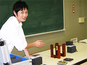 | この度の実践は、授業に役立つ特別なことを開発し、実践したというものではない。しかし、これまで「はかるくん」を聞いたことはあるが、実際の借入れまでは手が回らなくて・・・といった方のうち、一人でも多くの方が実践してみる気になっていただけたら本望である。とにかく日本科学技術振興財団の対応は、返送用の宅急便送付書まで同封していただけるほどていねいであり、費用も全くかからない有意義な実践であるといえる。 また私自身、実際に借りる気になったのは、少なからず先にも触れた「原子力体験セミナー」の影響を受けている。このセミナーに参加したことが、私自身にとって、目に見えない放射線の存在を確実に身近なものにさせてくれた。こちらの教員研修も強く推薦できる内容である。 今後は、セミナーで得た簡易型霧箱やGM管カウンターなどの授業への導入も考えていきたい。また「はかるくん」はもちろん、「実習用キット」の存在も研修会等で広く情報提供していきたいと考えている。ちなみに平成19年6月現在では、「はかるくん」のHP にて「Web予約」も可能になり、一層手軽に借入れ可能になったようである。 |