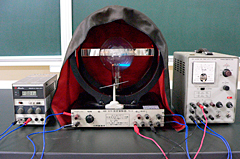 | 電子の比電荷(e/m)測定実験器(物理 II 演示実験)に対する生徒たちの反応や興味関心が,だんだん薄くなっているように感じるのは,私だけだろうか。 物理 I B(旧課程)では,「電子の発見」の項目で,陰極線,トムソン(電子の比電荷)の実験,ミリカンの油滴実験を学習した後,物理 II の「磁界中での荷電粒子の運動」で,ローレンツ力による円運動を学習していた。現在は,陰極線や電子の比電荷を学習せずに,物理 II の「荷電粒子の磁界中の運動」として演示実験をするためかもしれないが。 |