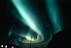「先生,“オーロラ”見たことがありますか」 と。 e/m 測定実験器にヒート電圧6.3Vを加え熱電子を発生させて,次にプレート電圧200Vを加えて電子を加速し,その加速された電子が真空管の中に少し封入してある水素ガスに当たって発光する仕組みを生徒たちに説明しながら,電子の軌跡を示す“青白い光”を見せた。 真空管内の水素ガスが地球の超高層大気に相当し,加速された電子が太陽からの荷電粒子(太陽風)に相当することを説明した。また,コイルがつくる磁界によって電子の軌跡がフレミングの左手の法則にしたがって曲げられ円軌道になることや,その円軌道の半径が,加速電圧や磁界の強さによって変わることなどを説明しながら実際に確かめていった。 “青白い光”に見入って,写真のオーロラの色や“虹の色”との違いなどについて質問する様子は,物理を受ける生徒たちとは何かしら違うものがあった。“オーロラ”という神秘的な自然現象の原理の一端を説明し,再現する「物理のすごさ」に感心する生徒たちの様子に,物理の授業に欠けているもの(五感で感じ,不思議さや疑問を大切にする)に気付かされた。 |