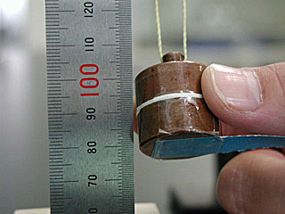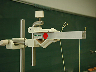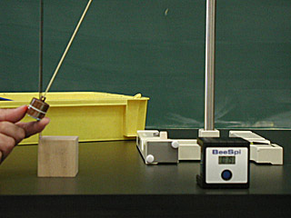 現在の中学生あたりが,最も「ビーダマン」で遊んだ世代であろう。装置の由来を生徒に話すと,懐かしく思えるのではないだろうか。 装置の一部をブラックボックス化することには,種々の意見があることは承知しているが,ある程度学習が進んだ段階では,適度なブラックボックス化も理解促進の上で有効であると思われる。また,現代の子供は,このようなブラックボックス化を違和感なく受けとめることができる。 なにはともあれ,速度をダイレクトに測定することで,何を実験しているのかがよくわかる,見通しのよい実験ができたと思われる。 |