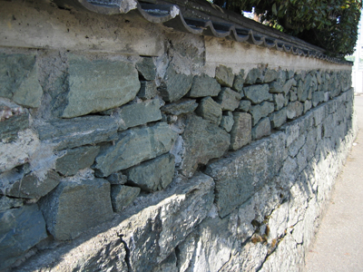 徳島県は東西に伸びる地質帯が南北に並んでおり,眉山,そして徳島市は三波川帯に位置しています(ただし徳島市の大部分は完新統の沖積層)。三波川帯は主として,中生代ジュラ紀に海底に堆積した泥岩・砂岩・チャートと,同じ時代に噴出した玄武岩質溶岩とが,白亜紀になって低温高圧型の変成作用を受けて結晶片岩となったもので構成されています。徳島ではこうした結晶片岩を石材として今でも多用しており,私たちにとって身近な岩石の一つとなっています。