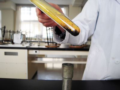 | 本校では毎年7月に,本校に入学を希望する中学生に対して体験入学を実施している。化学では50分の時間内で実施可能な実験のうち,インパクトの強いものを選んで中学生に体験してもらい,例年好評を得ている。この実験はその中でも評判のよかったもので,おなじみの金属である鉄を題材に,物質の反応速度を物質の形態でコントロール可能であるということを体験するものである。実験も比較的簡単で,結果も驚きに満ちたものであるので,授業の参考になれば幸いである。 |