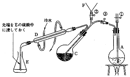 [5] 受器を温浴上で加温しエーテルを蒸発除去する.(ドラフト内で)