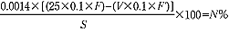 S=試料g,V=滴定値ml,5.70=窒素係数