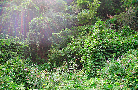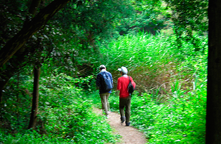 | 真夏の昼下がりの山歩きはともかく,植物観察という男子校生徒にとっては敷居の高い題材でしたが,彼らは結構楽しみながら,森を見て,木を見て,草を見ていた様子でした。自然観察というと,つい専門用語で説明したり,知識のお披露目になったり,蘊蓄を垂れてしまいがちになるのですが,小学生にも解るように,一緒に考えながら,子供たちに見つけてもらう,何より授業臭さ,教師臭さを極力消して我が子と一緒に山歩きを楽しむように振舞ったことが良かったのではないかと感じます。 当日および1か月後の生徒の感想は以下の通りでした。 「楽しかった」「中間や期末テストの後とか,冬休みや春休みにもやって欲しい」「いつもやっていないことをやって欲しい」「もののけ姫のモデルになった屋久島の森に行きたい」「今度は僕が先生を連れて行ってあげる」「新鮮感がありました〈満足度80〉」「授業進度に合っていないので時期的に早かった〈満足度60〉」「人数が少なかったので集中できた〈満足度70〉」 参加しなかった生徒の半数以上は,塾・予備校の講習があったからと答えていました |