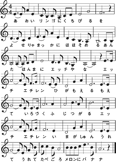 注)このファイルはWMA形式(134KB)で保存されています。再生にはWindows Media Player等のソフトウェアが必要です。 この歌をダウンロードして聴くことができます。