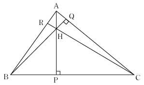 | 本章の第1時限目の授業では,§1の重心,外心,内心として1つずつの“心”を定義し,主な性質を1,2つ解説した。例えば, 定義:△ABCの各辺の垂直二等分線は1点で交わる。その点Oを外心と呼ぶ。 性質:外心を中心として,3頂点A,B,Cを通る円(外接円)を描くことができる。 と板書し,図を描いた。 重心G→外心O→内心 I と同じ形式,リズムで解説を進めたが,次時に設定した練習問題の中に,垂心Hも含むものを予定していたので教科書にはないが, 定義:△ABCの角頂点から対辺に下ろした3つの垂線は1点で交わる。その点Hを垂心と呼ぶ。 と板書し,図を描いた。 ところで,この定義については,“垂心”なる用語の設定であり,下線部分の3直線が“1点で交わる”ことは定理である。重心,外心,内心では,この“1点で交わる”ことを教科書通り,簡単な証明を与えつつ授業を展開した。ただ,“垂心”での“1点で交わる”ことについては, 「今は証明はヒミツ。自分でできた者は証明を提出せよ。正解者には賞品を出す。」と結び,ちょうど授業のチャイムが鳴るという授業であった。