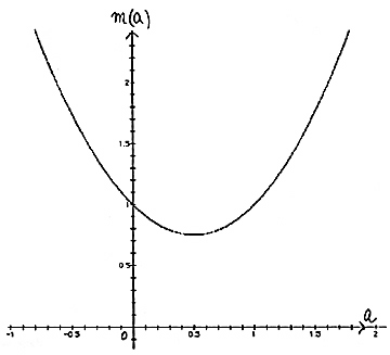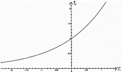 (ア)を、xy 平面を正面にして見ると(イ)で、a 軸が消えたように見えるグラフである。また、ay 平面を正面にして見ると(ウ)で、これが m (a)=a2 - a +1 のグラフになっている。 問題2は略 問題3については、数学のアイディアの1つとして「置き換え」があり、それを用いたものである。 xt 平面上で、曲線 t = 2x 上に y の値を表す棒を立てる。