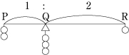 な天秤,PQ:QR=1:2 さて,左右にいくつずつのおも