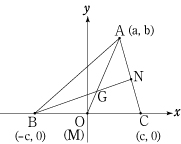 図のように △ABC を辺 BC の中点 M が原点 O,辺 BC が 軸上になるように座標平面をとる。また,A (a,b) ,B (-c,0) ,C (c,0) とすると,