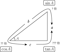 三角比は一般的には「比」→「倍率」の順序で説明をしていくが、ここでは「倍率」→「比」の順序で説明をしてみた。本来の定義である