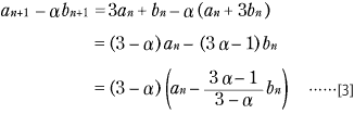 ここでは an と bn を合体させた数列 例1 [1] −α×[2] から, [4] より,数列 |