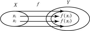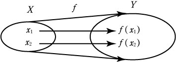 | 厳密に写像の定義を理解させよう。ただし,関数は写像の一種であることを生徒達に理解させる。 定義 集合 X のすべての要素から,集合Y の要素をただ一つ対応させるとき,対応 f を集合X から集合Y への写像であるという。 f : X →Y 次に,写像について四つの非常に重要な性質を考えて分類していく。 定義1(単射:1対1の写像)