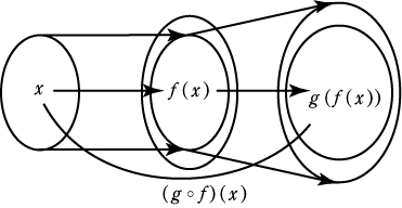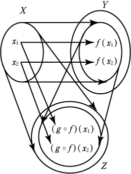 以下の2つの定理を理解しておこう。証明には合成関数の定義を効果的に利用する。 定理1 証明 x1,x2 ∈A に対して単射の定義の対偶を利用して (2)f,g が共に全射ならば,g この(1)(2)は当たりまえに感じるが,数学では厳密に証明する。 定理2