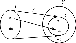 f : Y →X を全単射とする。真部分集合よりY - X は空でないから,a0∈Y - X となる a0 がある。 よって,最小濃度は |