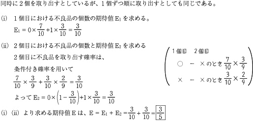 この生徒は、数学Cで学習する期待値の加法性、つまり2つの確率変数 X,Y の和の期待値が、E(X+Y)=E(X)+E(Y)であることを当然知らないが、直感的に考察している。直感で考えを進めるのは、どうかという見方もあるが、これは内的な数学的活動に基づく考察であり、非常に数学的な発想であると考えている。