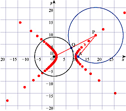 この問題の発展として楕円や双曲線を描く軌跡の問題を考えることができる。問題を解かせる必要はないが、提示して見せることで、定義に基づいた図形であることを理解させるとよい。