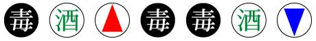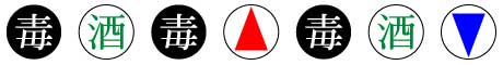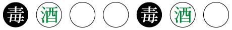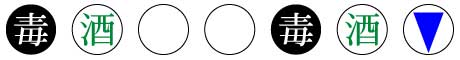 さらに第2のヒントから,右端は毒ではない,前進でもない.酒の位置はすでに決まっているから酒でもない.したがって,右端は後退の薬である.