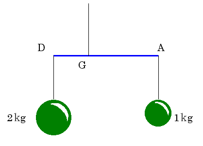 点 G は物体全体が釣り合う点である.この点を力学的重心または物理的重心という.