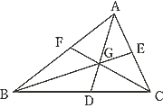 この三角形の力学的重心をGとし,AG,BG,CGの延長が対辺と交わる点をそれぞれD,E,Fとする。