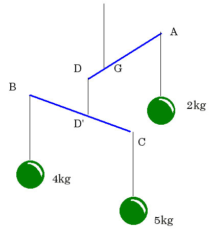 棒BCの両端にかかる重さが4kg,5kgだから, BD':D'C=5:4