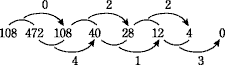 この図で,最初の部分 は, α0 をα1 で割ったときの商がθ1で余りが α2である ことを示している.