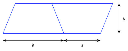 このような台形を2つ,次のように連結すると,底辺の長さa+b,高さ h の平行四辺形ができる.