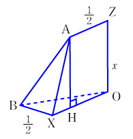 x>0だから, 三角錐 O−ABC の体積 V1を求めよう.