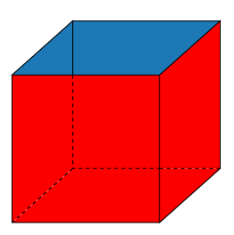 これらの図において,青い正方形が箱の底になる部分で,赤い線が箱の口になる部分である.