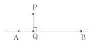 そうすると,与えられた点Pから仮想直線ABへの垂線の足Qも作図可能であることがわかる.