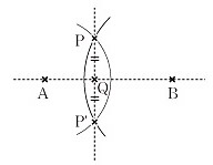 を描くことにより,仮想直線ABに関するPの対称点P' を作図する.