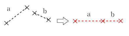 この条件が満たされないときは,b を同じ方向の短い線分に取り替えることにより a を b の延長上に作図すればよい.