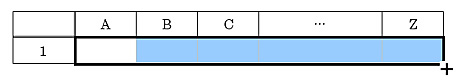 B列,C列,D列では,自動的に,AがB,C,Dに書き換えられている.これがオートフィルの効果である. |
