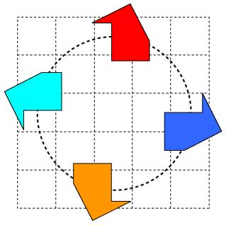 [2] 4部品を円に沿って次の位置まで時計回りに移動.
