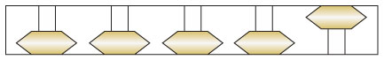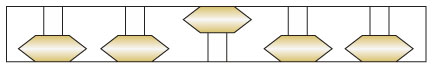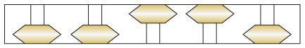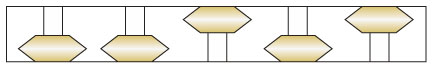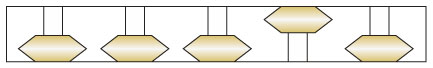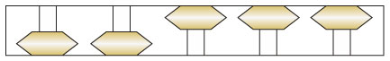 この図が1つ玉そろばんの0(ご破算,クリア)の状態である.ここに1が入ると次の図になる.