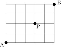 問 図のような街がある.A 地点から B 地点まで最短コースで行くとき,P地点を通る確率を求めよ.