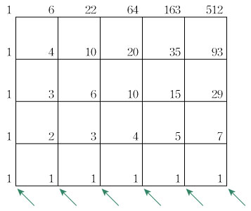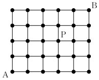 例えば,A地点からP地点に行くコースはどれも東行き→の区間が3回,北行き↑の区間が2回から成るので,それぞれが選ばれる確率は