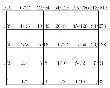 ここに現れる数値を分母と分子に分けて書いてみよう.