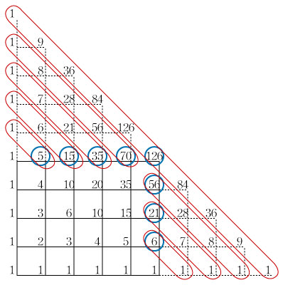 そこで,パスカルの三角形と分子の図とを見比べてみよう.