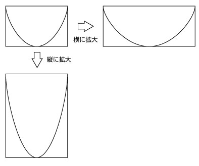 | 前々回(H17年12月)は放物線を長方形の中に入れておき,長方形を縦・横に拡大・縮小しても得られる曲線は放物線であるという話をした.