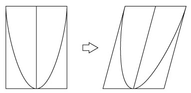 諸君もよく知っているように,放物線 y=ax2 と放物線 y=ax2+bx+c は合同で,一方を平行移動すれば他方に重なる. II 長方形を x 軸方向にずらして平行四辺形に変形する場合